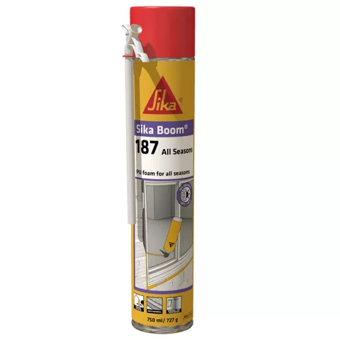 A Sika Boom-187 All Seasons poliuretán hab, egy önterjedő, szórófejjel felhordható PUR-hab, kiválóan alkalmas: rések és üregek tömítésére ablak- és ajtókeretek körüli hézagok kitöltésére hang-,